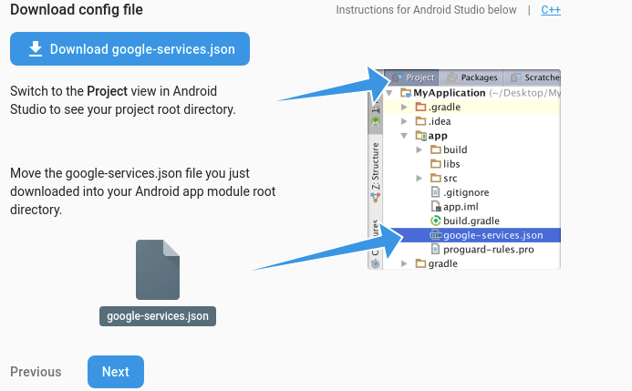 1. Download the google-services.json file and place it in the required location in your project.