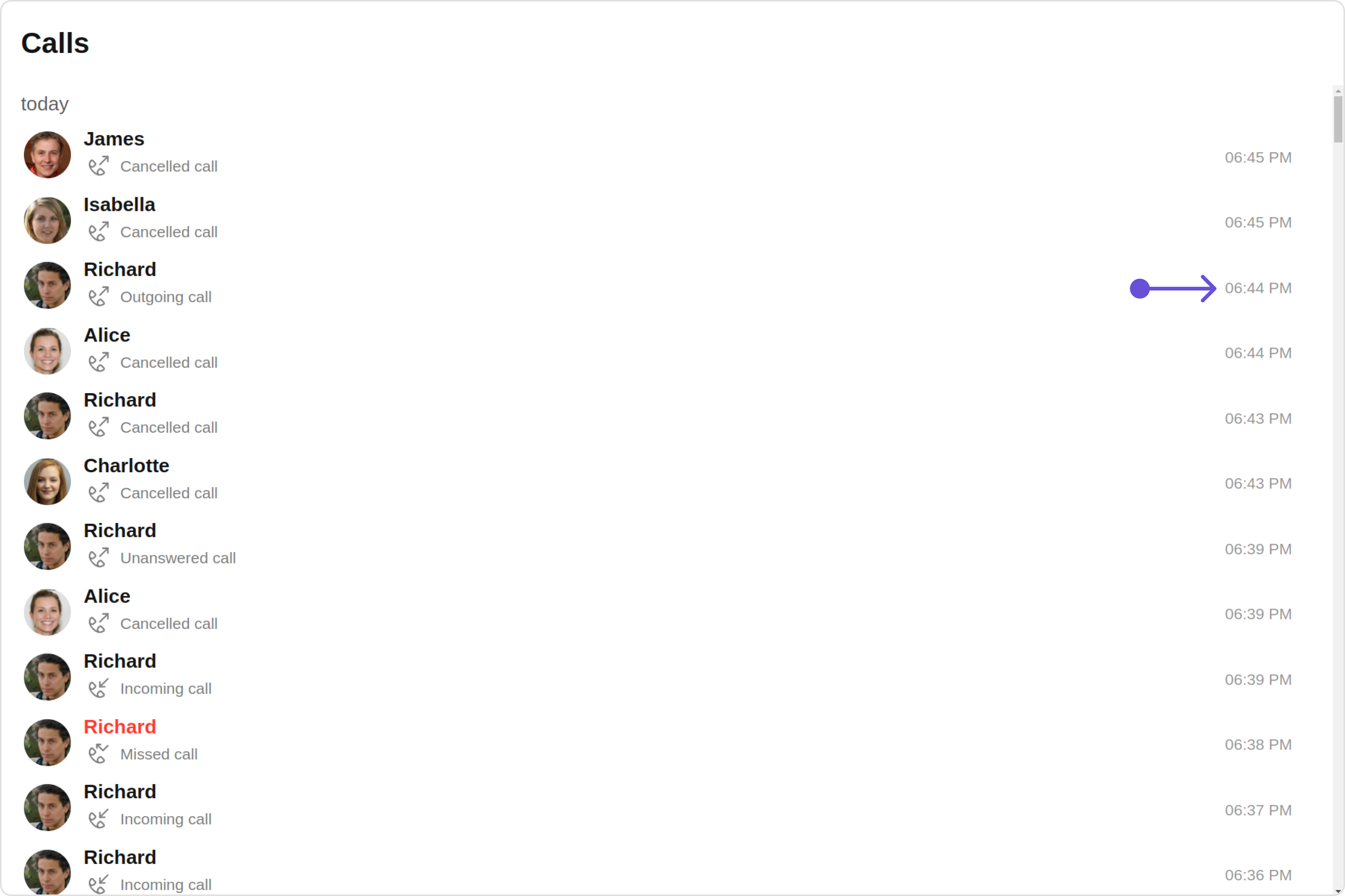 | missedCallIconTint | Used to set missed call icon tint | missedCallIconTint?: string; |
