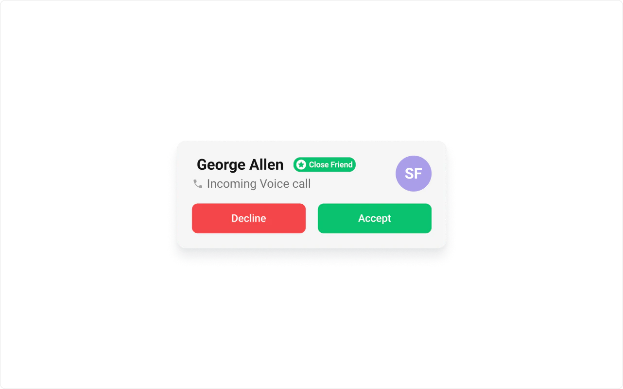 To fit your app’s design requirements, you can customize the appearance of the Incoming Call component. We provide exposed methods that allow you to modify the experience and behavior according to your specific needs.Style
